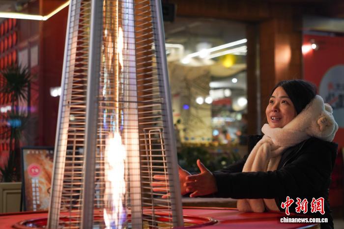 图为乘客正在温炉旁与温。中新社记者 赵宇航 摄